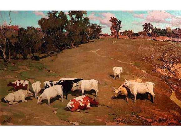 Stephan Kalesnikoff ( 1879 - 1955 ) was a painter. Stephan Kalesnikoff s works have been auctioned off multiple times, with realized prices varying according to the size and medium of the artwork, for instance of 85969.57 USD for Vaches dans un pré in 2008