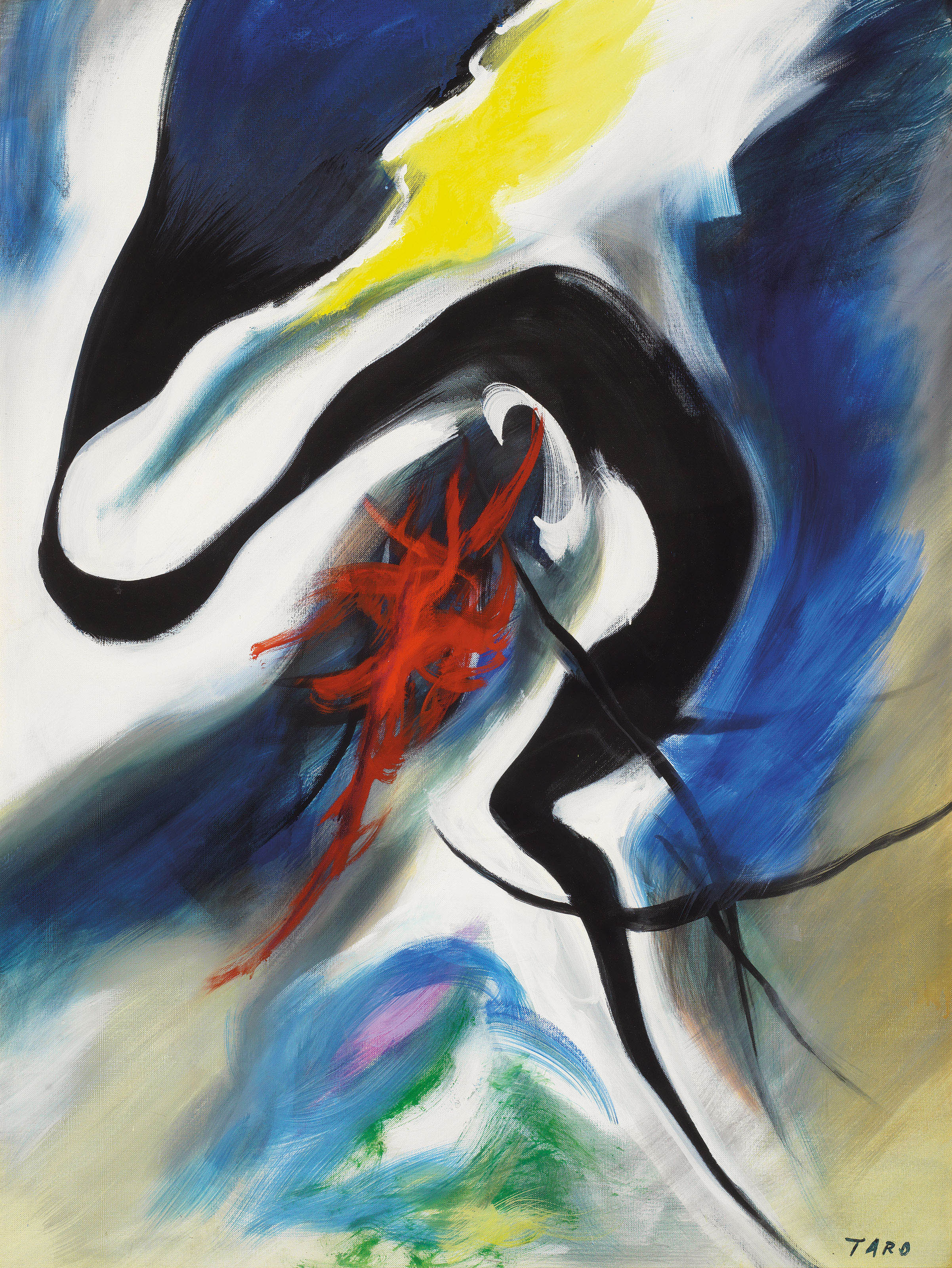 Taro Okamoto ( 1911 - 1996 ) was a Japanese Asian Modern and Contemporary painter, art theorist, and writer, known for public sculptures and murals. Taro Okamoto s works have been put up for auction numerous times, with realized prices greatly surpassing estimated prices, varying from 156.42 USD for The Tower of the Sun in 2009 to a remarkable record 43838.67 USD for UN ?IL ET UN AUTRE ?IL in 20