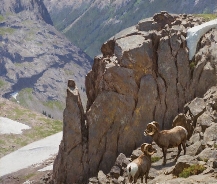 Tucker Smith ( 1940 - ) is an American painter. Tucker Smith s works have been put up for auction numerous times, with realized prices surpassing estimated prices, varying from 1320 USD for Mountain Goat in 2005 to 81900 USD for Perspective in 2014 , based on the size and medium of the artwork.