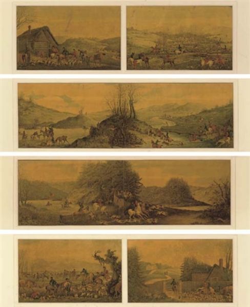 Walter Parry Hodges ( 1760 - 1845 ) was a British painter. Walter Parry Hodges s works have been put up for auction numerous times, with realized prices surpassing estimated prices, varying from 829.83 USD for Gentlemen placing bets at a sporting and gaming club in 2005 to 911.02 USD for The Beaufort Hunt, a series of eight hunting scenes: Going out of Kennel; Finding in a bog in 2007 , based on