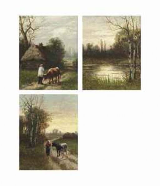 Willem Frederik Hulk ( 1852 - 1924 ) was a painter. Willem Frederik Hulk s works have been put up for auction numerous times, with realized prices surpassing estimated prices, varying from 276.82 USD for Koeien en kalf bij een drenkplaats in 2011 to 4005.49 USD for A peasant with a cow near a wooden shed; and A wooded landscape at sunset with a peasant woman and a cow; a wooded landscape wit in