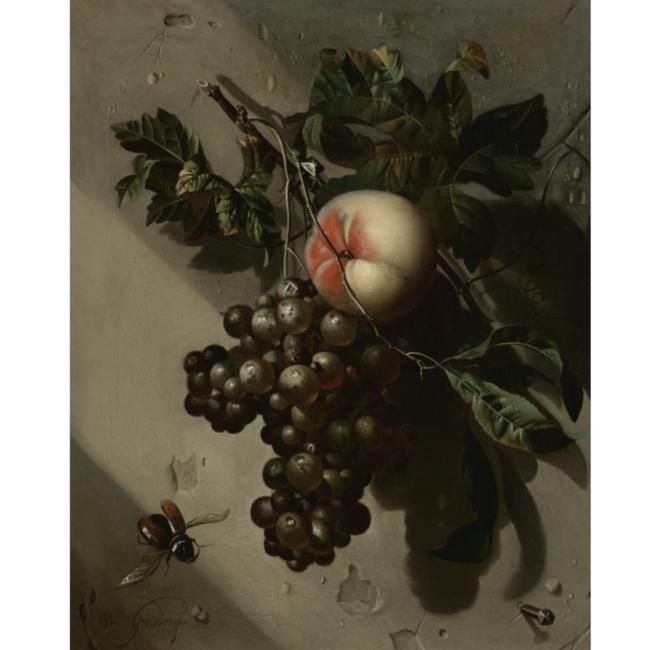 Willem Grasdorp ( 1678 - 1723 ) was a Dutch painter. Willem Grasdorp s works have been auctioned off multiple times, with realized prices varying according to the size and medium of the artwork, for instance of 10139.15 USD for A plum, grapes on the vine and medlars on a ledge with peaches, a snail in the foreground in 2004