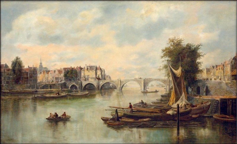 William Howard ( 1800 - 1850 ) was a British painter. William Howard s works have been put up for auction numerous times, with realized prices surpassing estimated prices, varying from 652.03 USD for A busy continental harbour in 2004 to 2150.05 USD for A view of a canal in a busy Dutch town in 2005 , based on the size and medium of the artwork.