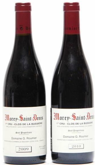 1 bt. Morey Saint Denis 1. Cru "Clos de la Bussiére", Domaine Georges Roumier 2010 A (hf/in). etc. Total 2 bts