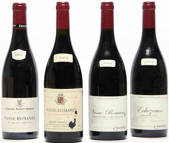 1 bt. Vosne-Romanée, 1. Cru "Les Chaumes", Domaine Robert Arnoux 2002 A (hf/in). etc. Total 4 bts