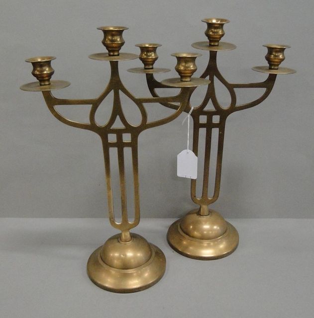 1 pair of chandeliers, art nouveau brass, H38cm, a foot with small dent