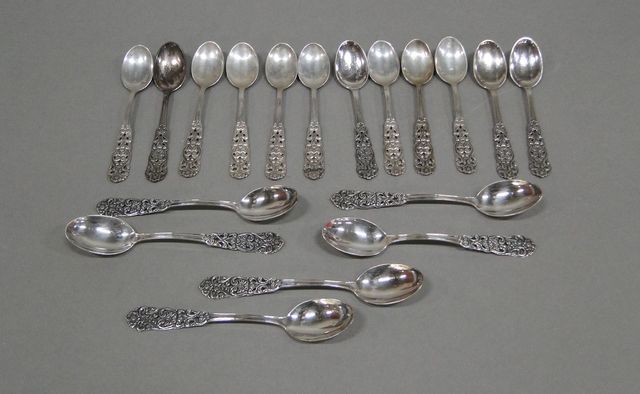 12st Coffee spoons and 6x teaspoons, silver 1950/60's, L10 & 11,5cm, total weight 163g