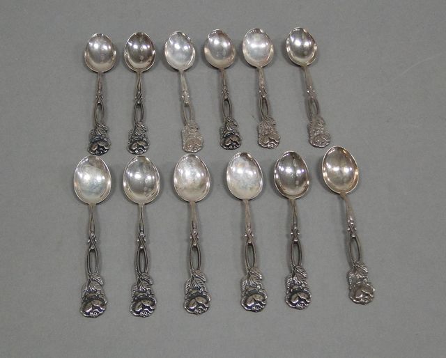 12st suede spoons, silver rosdekor, L9cm, total weight 92g