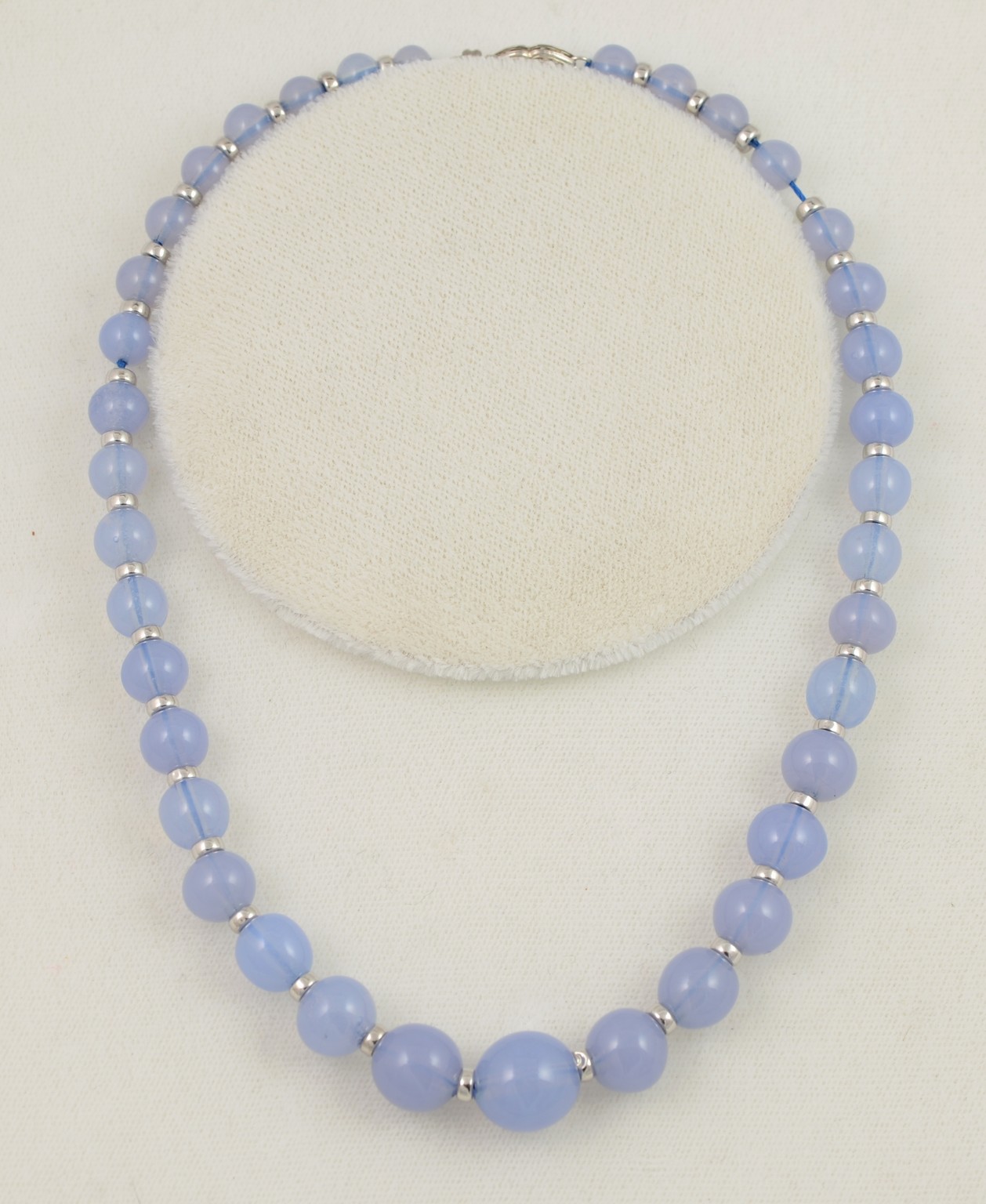 14K White Gold and Graduated Chalcedony Bead Necklace, 14-1/2 long