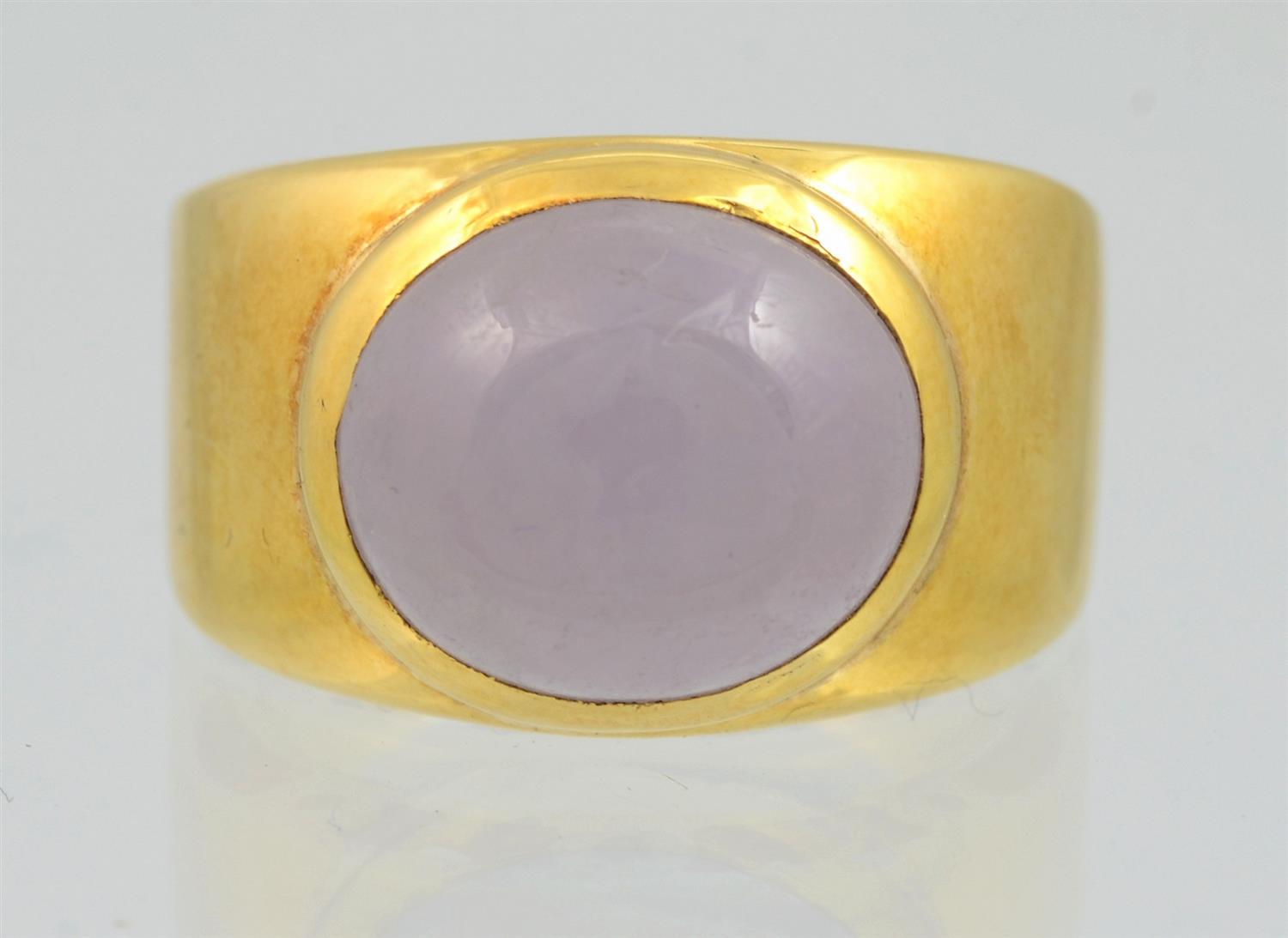 18K Yellow Gold and Lavender Jade Ring, size 8-1/4, 10.1 dwt