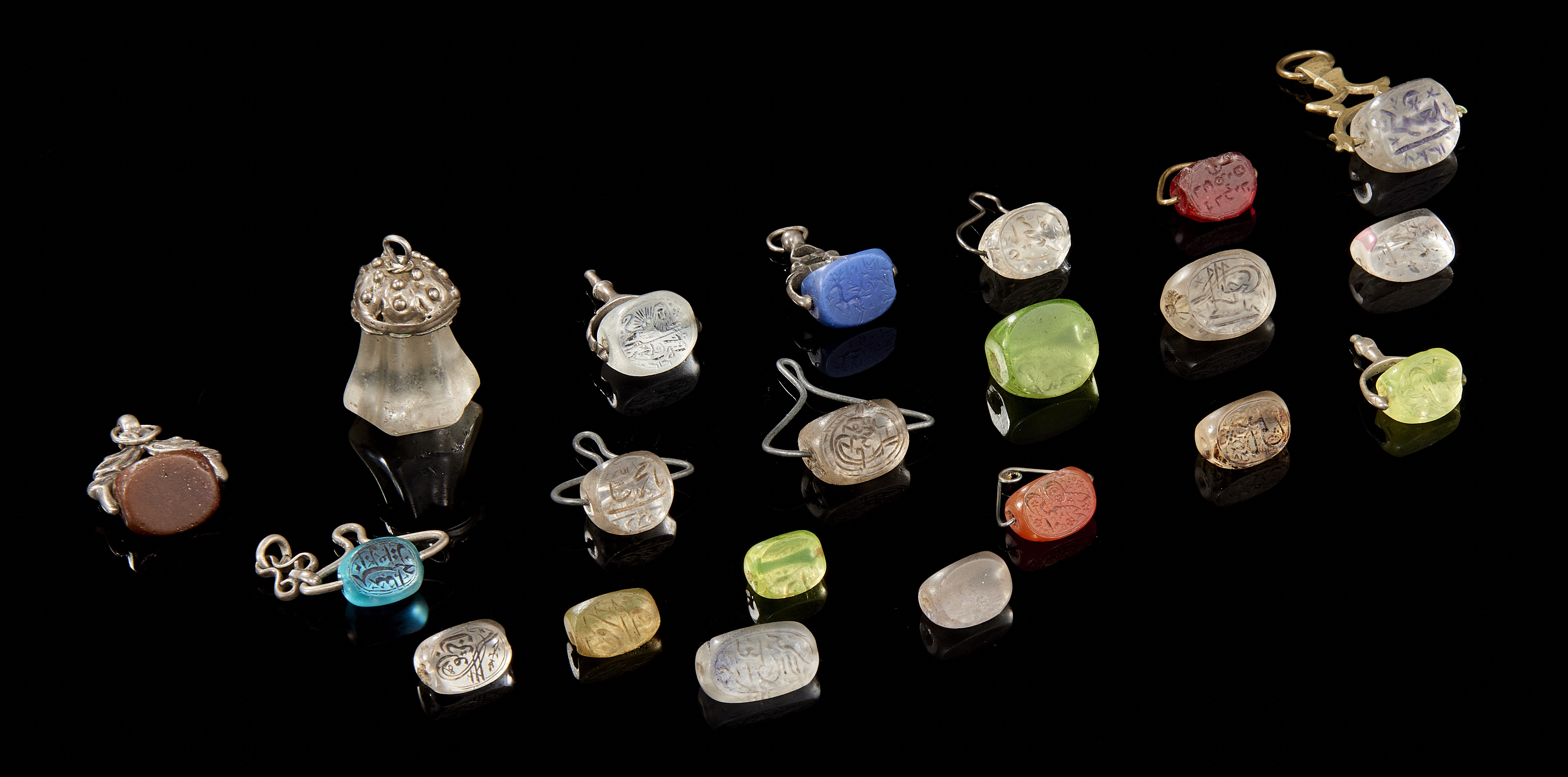 20 three-faceted seals and one hexagonal seal, Iran, Qajar period (1786-1925)
