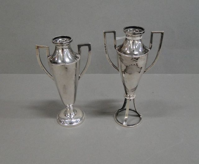 2st vaser med hänklar, silver, omärkta, H15 & 16,5cm, total vikt 272g