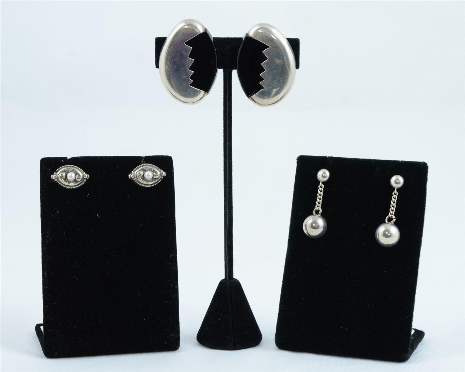 (3) Pairs of Silver, Pearl, and Onyx Earrings, 1-1/2 long, total weight 1.03 TO