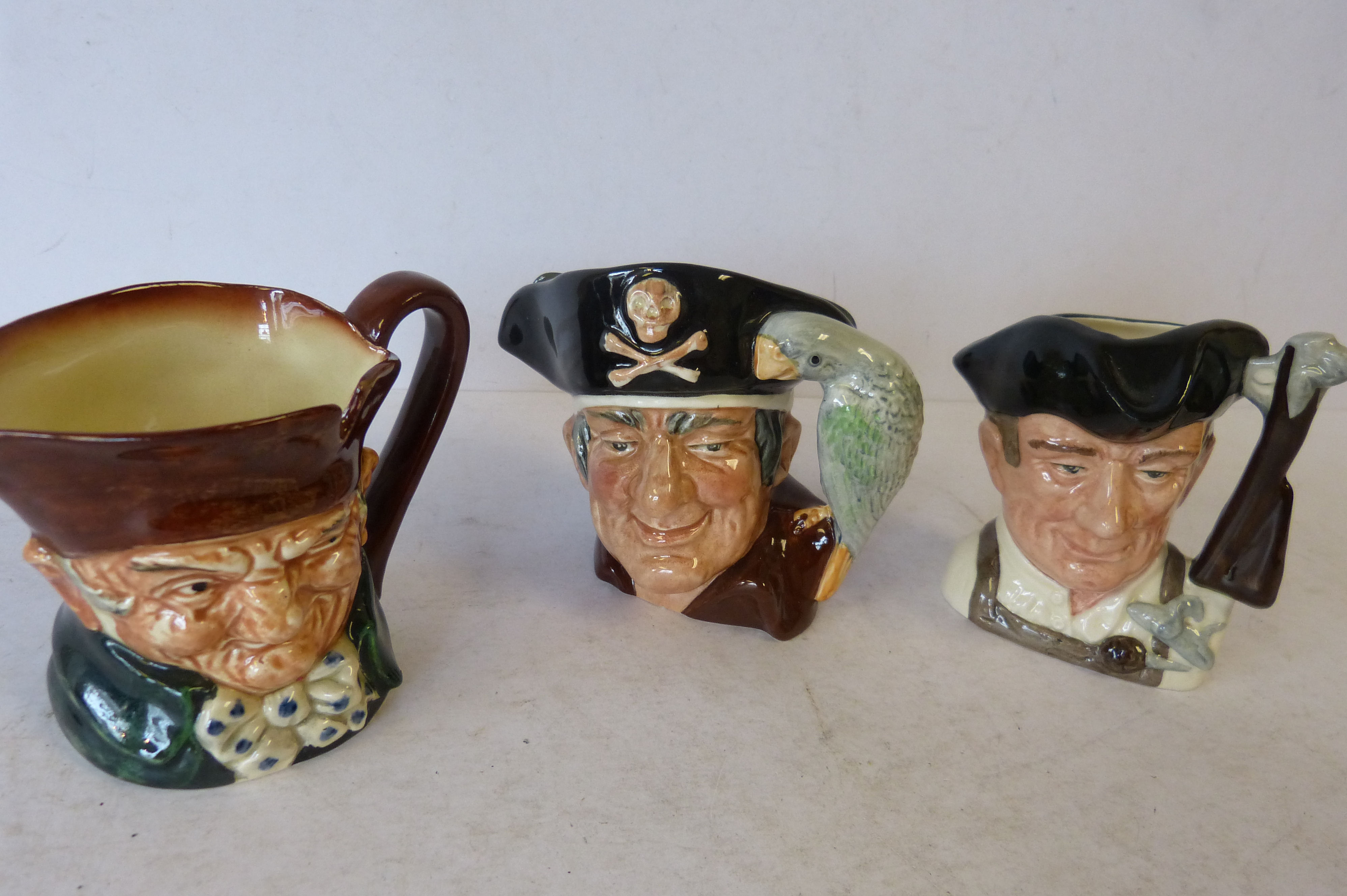 3 x Small Royal Doulton Character Jugs, ``Long John Silver`` D6386 ``Gun Smith`` D6580 and ``Old Charlie