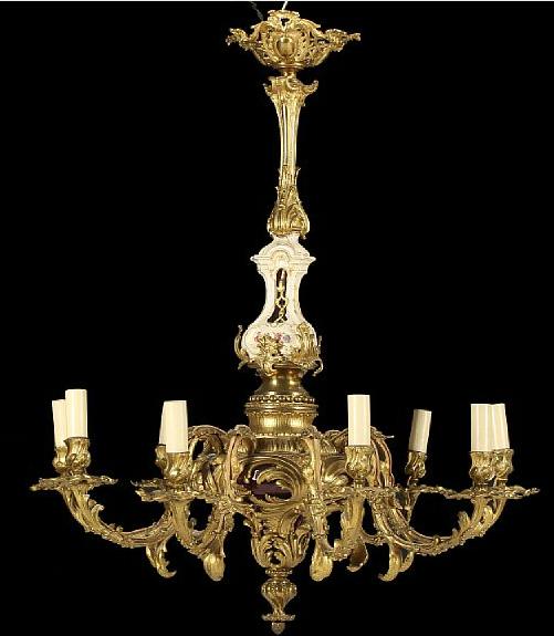 A 19th century Rococo style bronze chandelier with nine arms