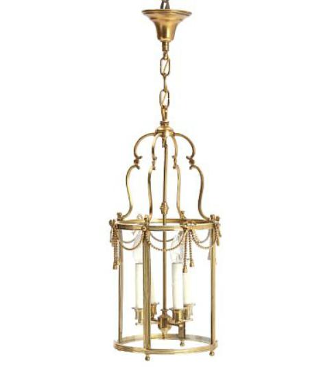A 20th century brass hall lantern, decorated with bows and foliage