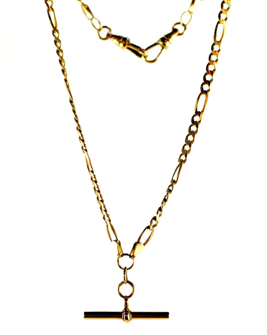 formed as two bracelets with snap clasps and T-bar as fitted, 13.1g.