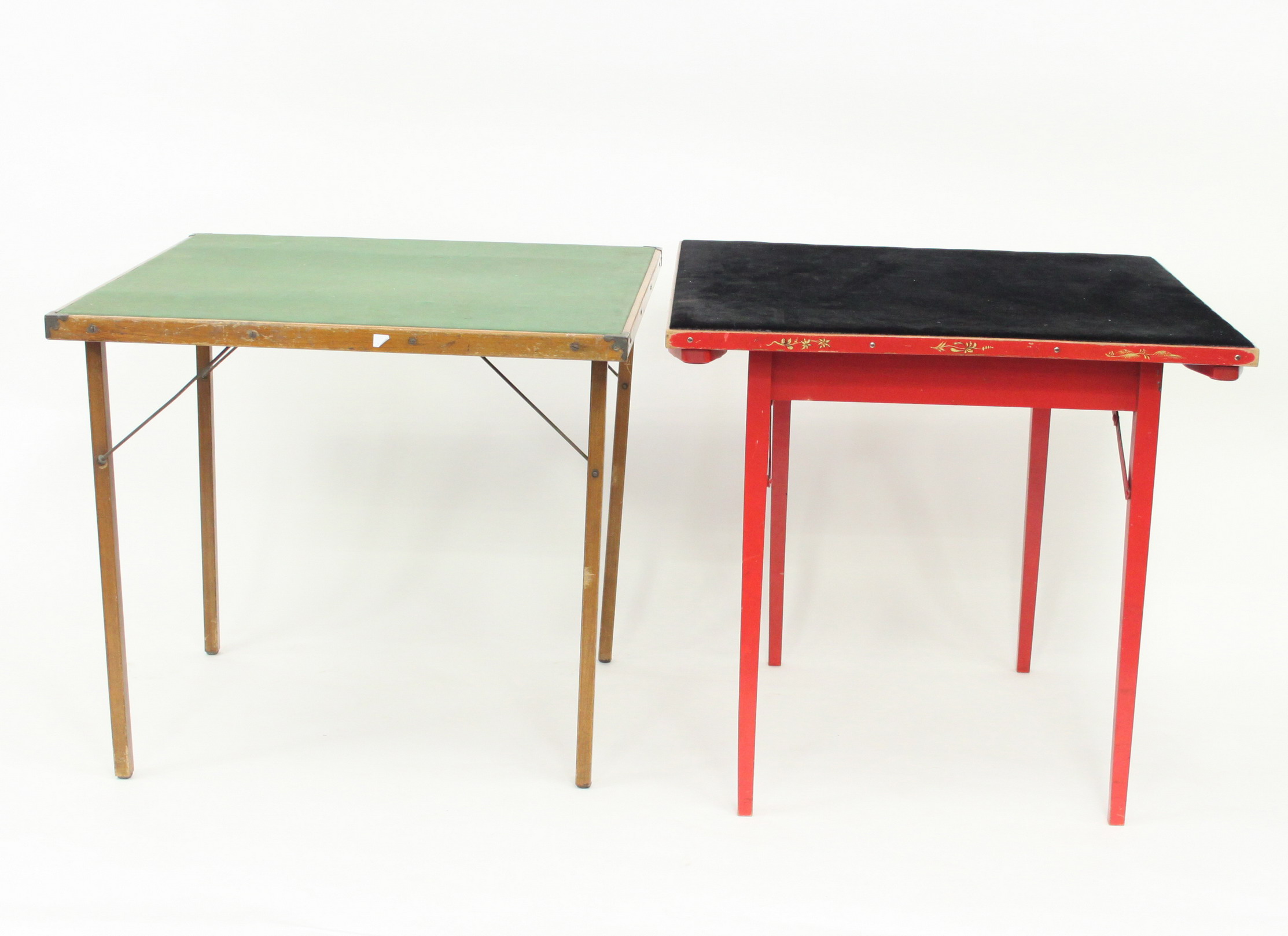 A baize-topped folding bridge table and another, both 76cm square/Provenance: Plas Gwyn, Anglesey