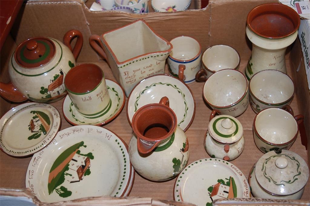 A box of assorted Torquay motto wares to include preserve pot, teapot and cover etc