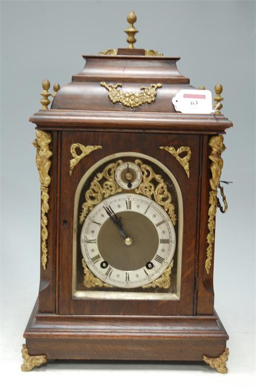 A circa 1900 Winterhalder & Hofmeier oak and beech cased bracket clock, CIRCA 1900