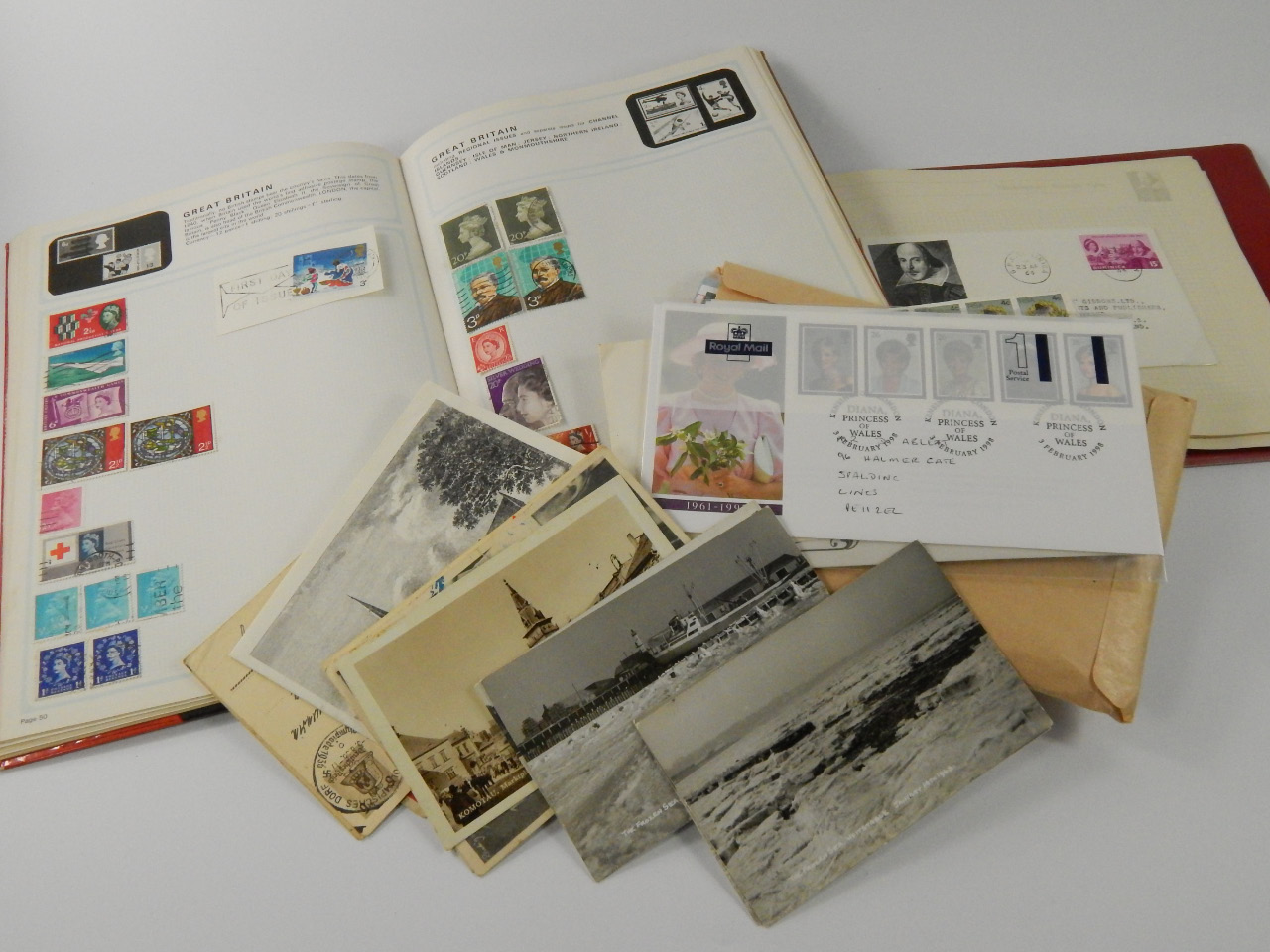 A collection of stamps, postcards, etc, to include a stamp album, postcards of Germany