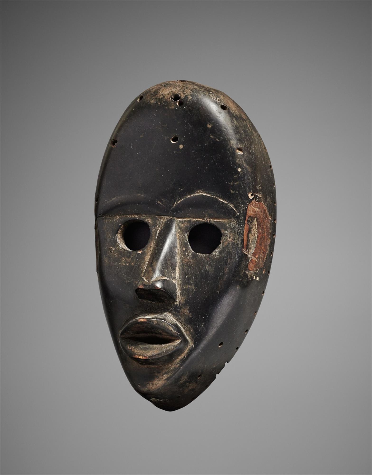 With pierced circular eyes, grooves about the border, dark glossy patina.