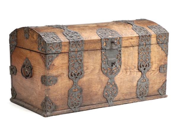 A Danish 18th century openwork iron mounted oak Baroque chest