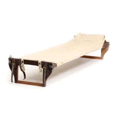 A Danish DSB mid 20th century folding beech and ash wood stretcher