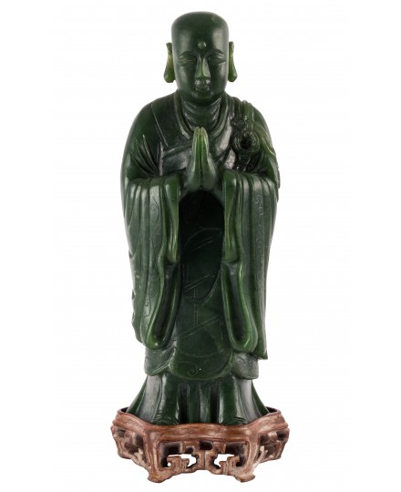 A DARK GREEN JADE CARVING OF ANANDA, QING DYNASTY, 1644-1911