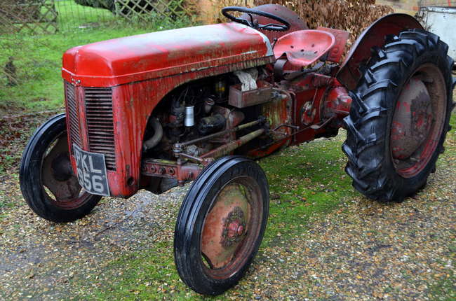 A Ferguson red tractor, registration number PKL 956, circa 1950 , the tractor is not road worthy