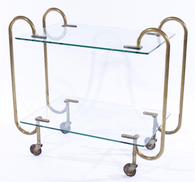 A Fontana Arte brass and glass bar cart circa 1950