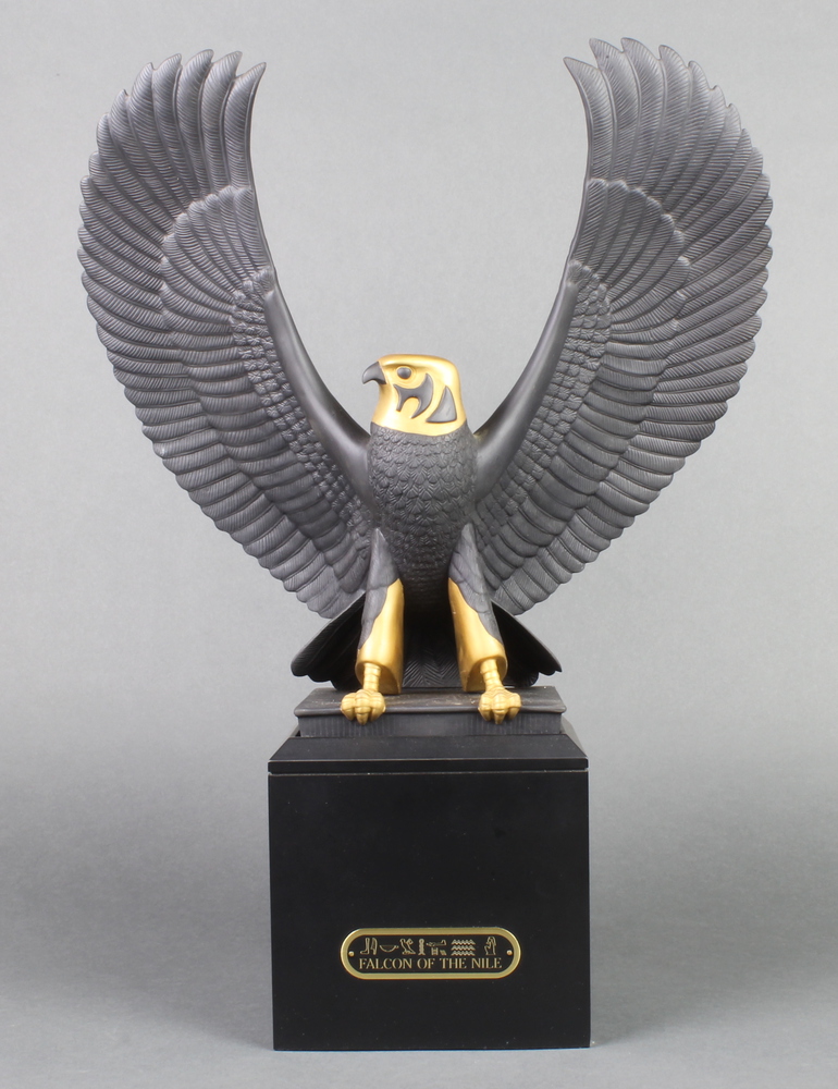 A Franklin Mint black porcelain figure - The Falcon of the Nile 13", raised on a square base
