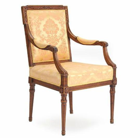 A French walnut Louis XVI armchair, carved with festoones and foliage