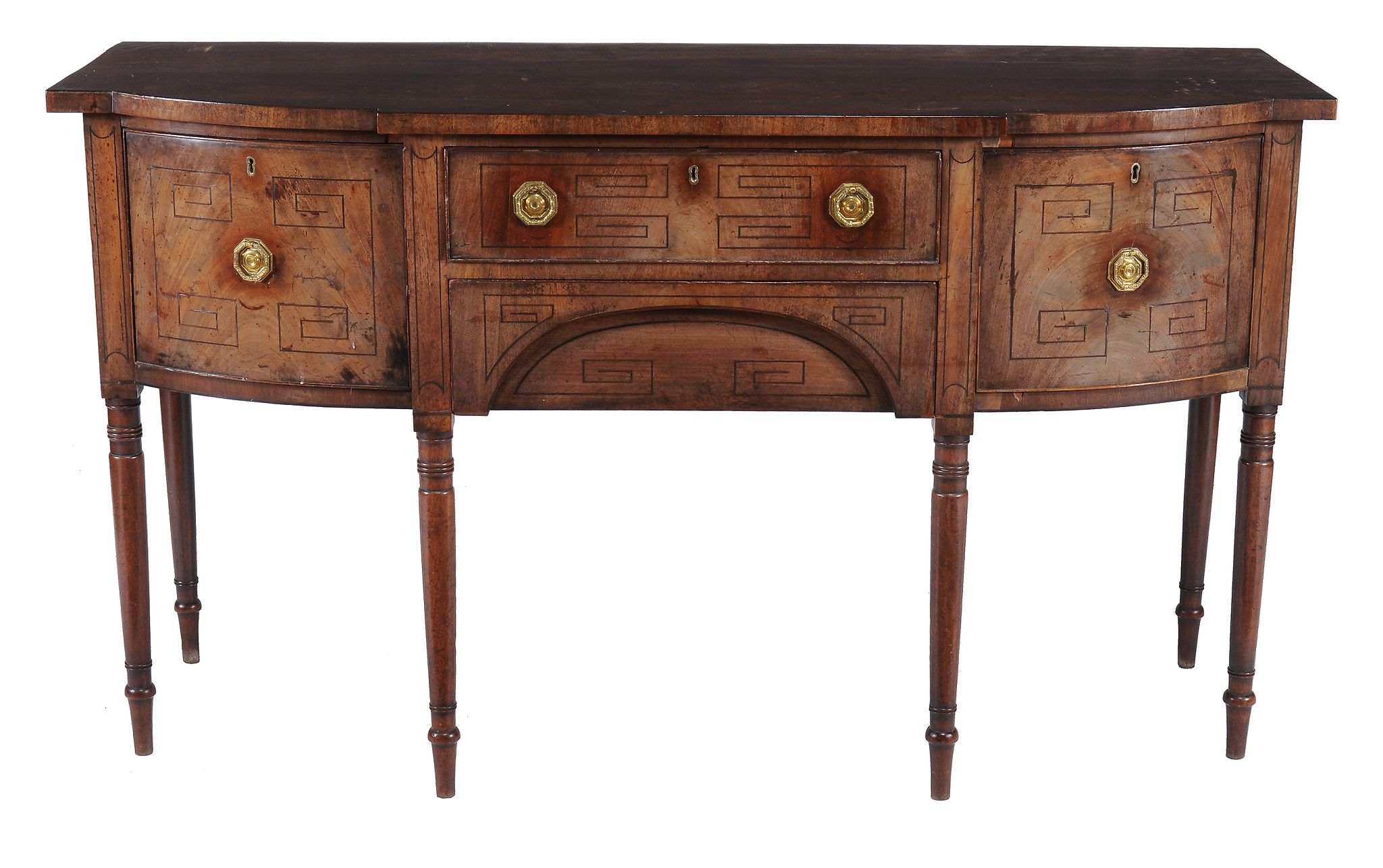 the central frieze drawer above a drawer and flanked by a deep drawer on each side, on turned tapering legs