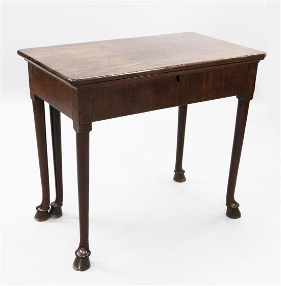 A George III mahogany games table, possibly Irish, with turned legs and hoof feet, W.2ft 7in.