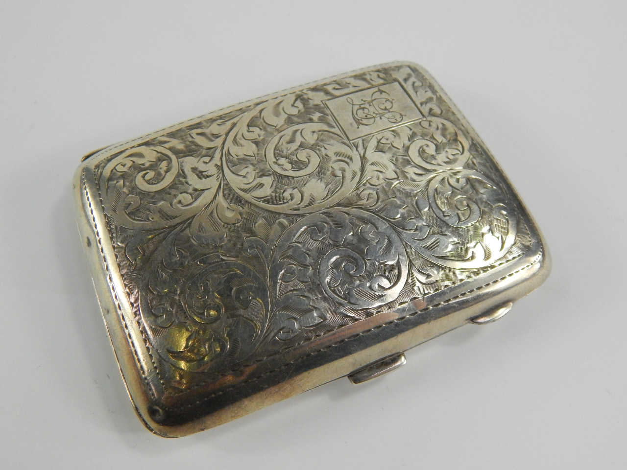with engraved foliate decoration, of curvilinear form, reserve monogram engraved, Birmingham 1933