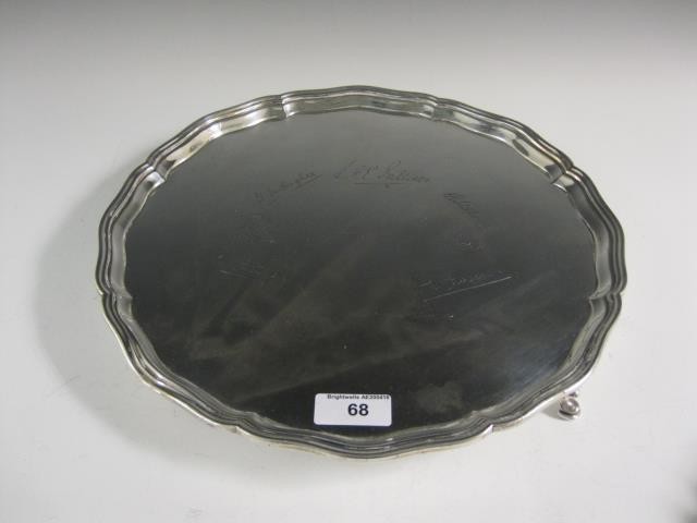 A George V silver shaped circular Salver engraved signatures on four hoof feet, Sheffield 1930, 12in