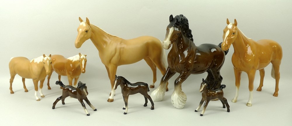 A group of Beswick horses, comprising a Shire horse, two Palomino's one in gloss finish, the other matt