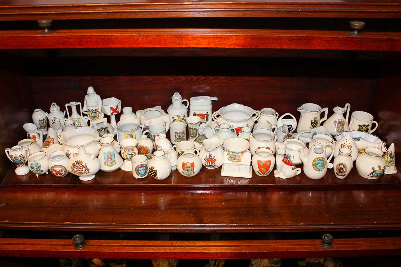 A large collection of approximately sixty Goss and similar crested china including vases, candlesticks, animals and figures