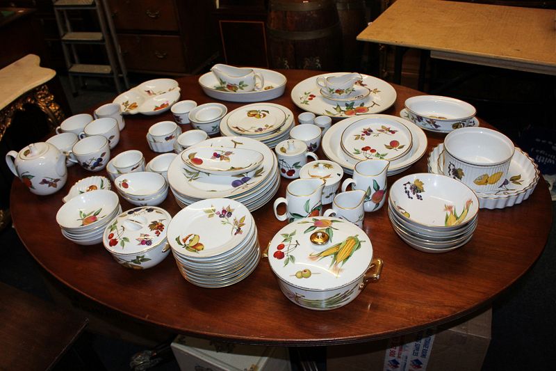 A large collection of Royal Worcester Evesham pattern table ware including serving dishes and tea ware