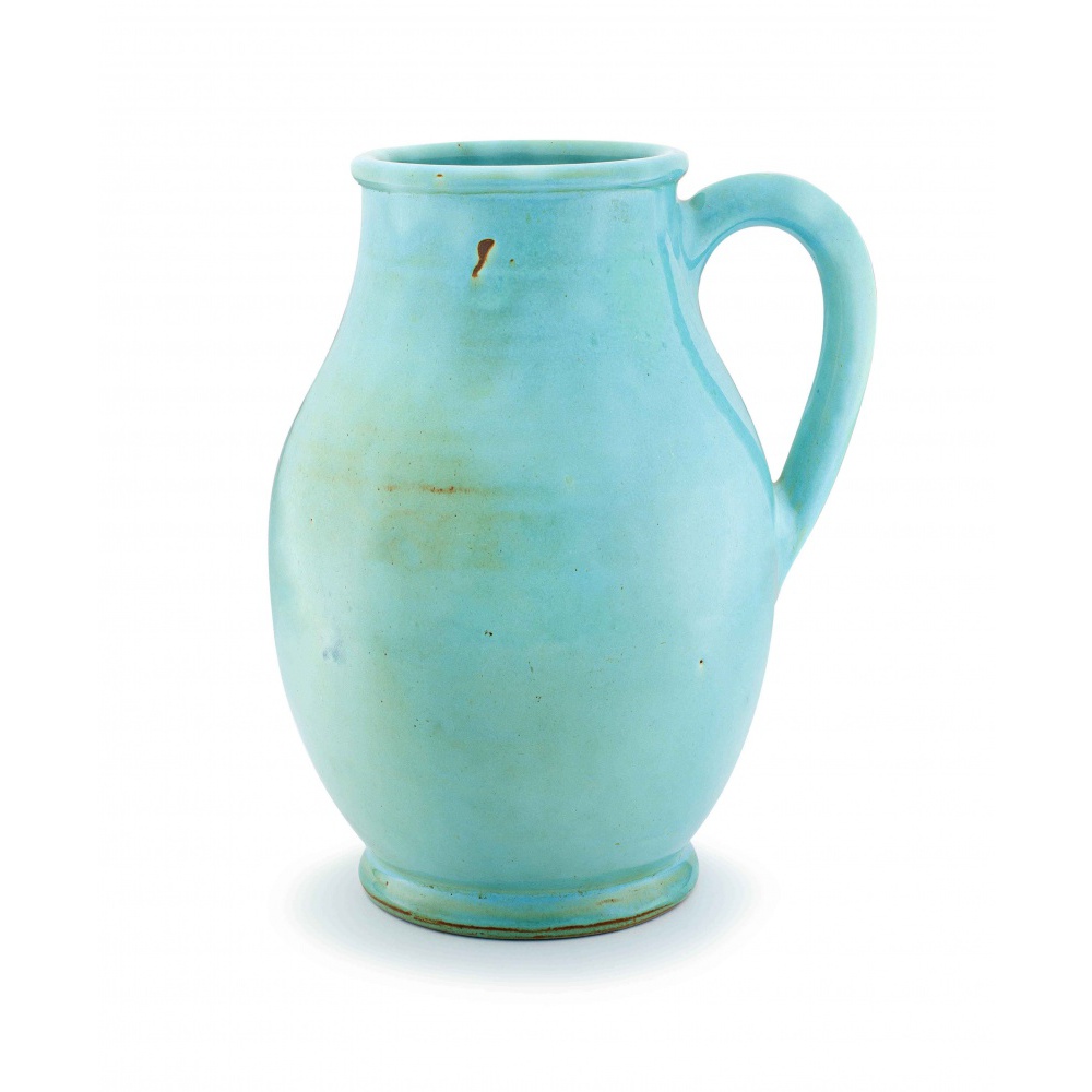 the baluster body applied with a loop handle, with pale yellow highlights, the handle with restorations, painted Linn Ware, 25,5cm high