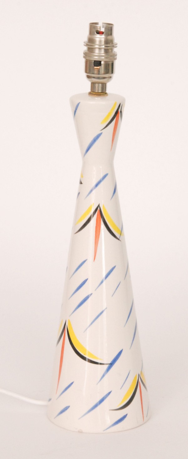 A later 20th Century Italian table lamp of tapering form decorated with hand painted blue, yellow, red and black brush strokes, height 31.5cm