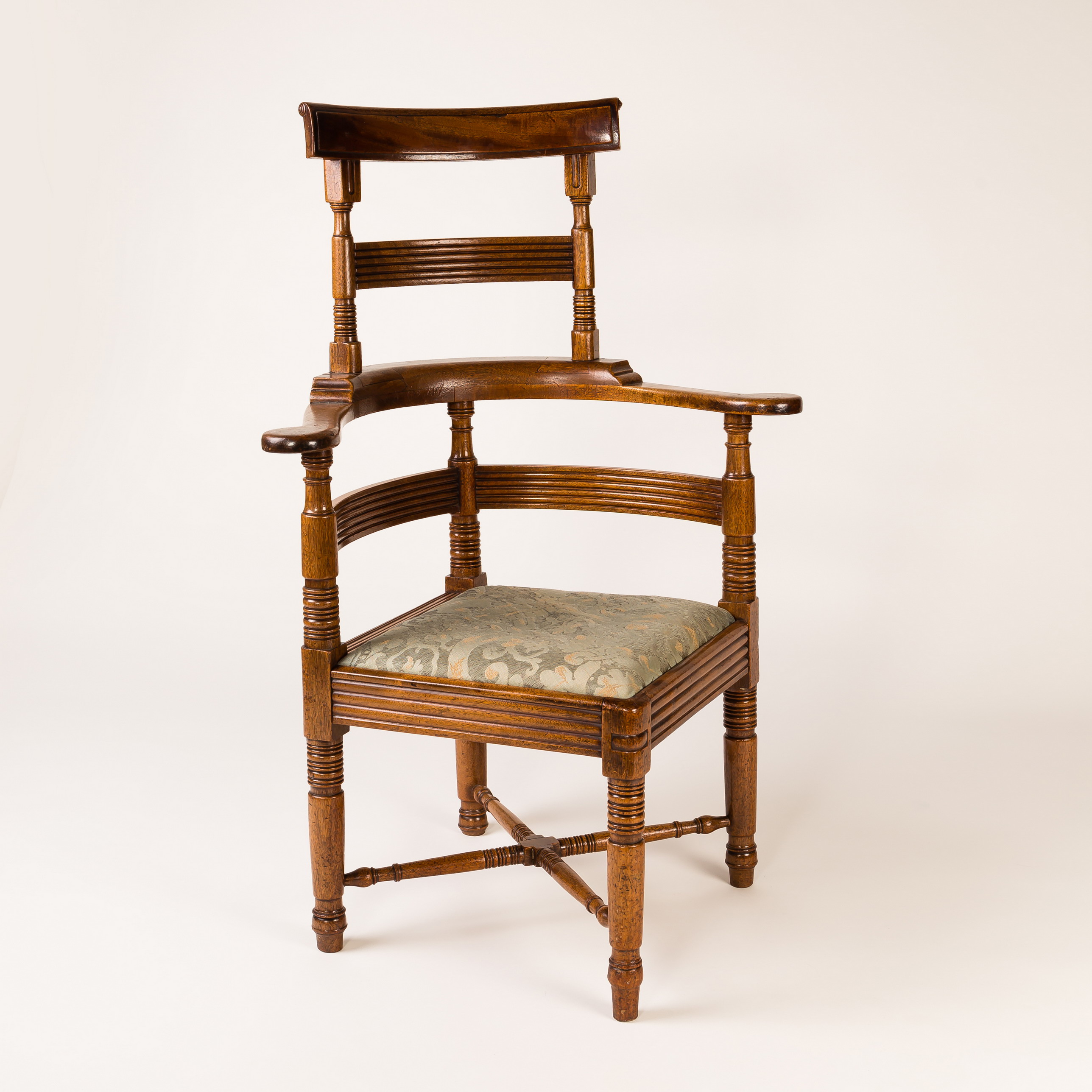 A mahogany barber's chair, circa 1830, with high back on turned legs