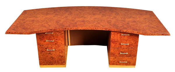 A modern simulated burr walnut pedestal desk