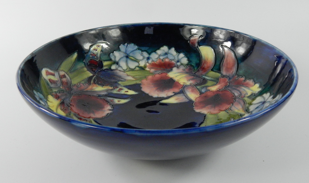 A Moorcroft pottery bowl decorated in the Orchid pattern