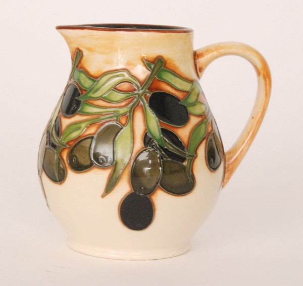A Moorcroft Pottery Trial jug decorated in the Mediterranean collection Olives pattern designed by Nicola Slaney, impressed and printed marks, painted Trial, height 12cm