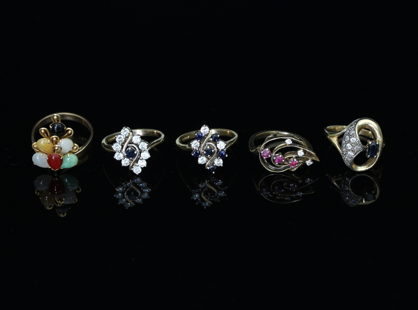 ring size P˝ and four other gem set dress rings, each set in 9ct gold (5)
