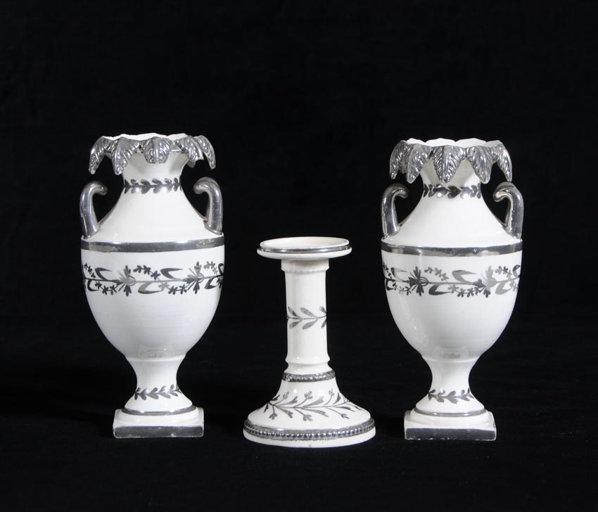 together with a little candlestick. Naples, the vases h.cm. 12; the candlestick h.cm. 8