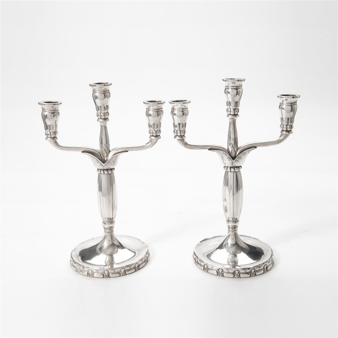 A pair of Danish silver candelabra, designed by Georg Jensen