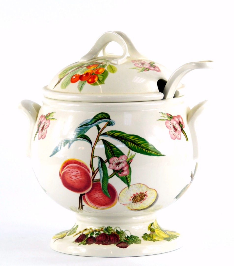 A Portmeirion pottery soup tureen and ladle decorated in the Pomona pattern